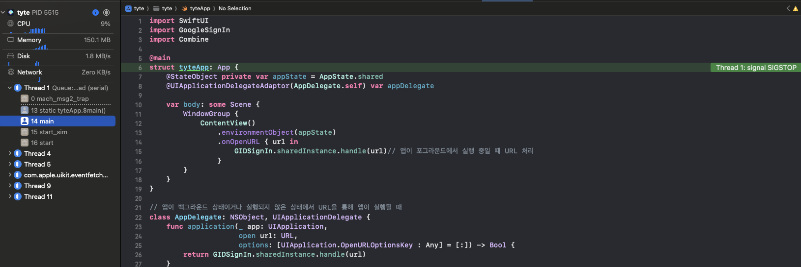 위 사진은 제가 사이드로 제작중인 앱 실행 후, 디버그 네비게이터로 스레드의 콜스택을 조회한 캡처본인데요.