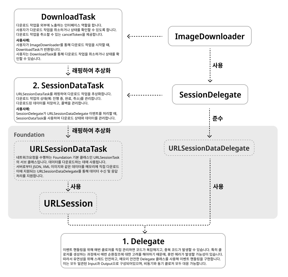 - 델리게이트 메서드를 통해 진행 상황, 완료, 오류 등의 이벤트 전달