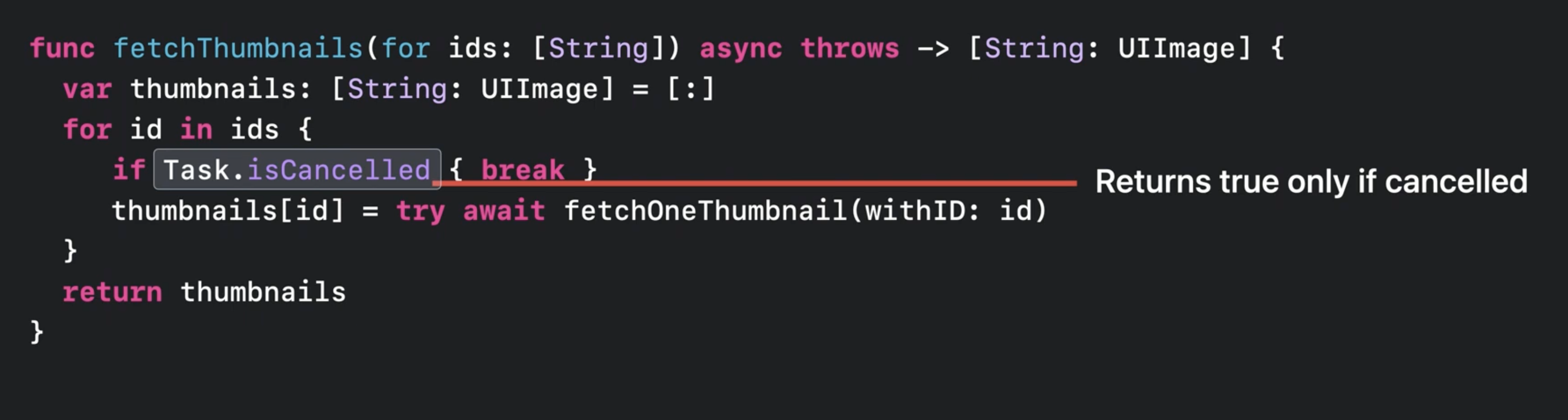 1. 대기되지 않은 작업을 취소된 것으로 Swift는 자동으로 표시(이 때 해당 작업의 모든 하위 작업도 같이 취소)