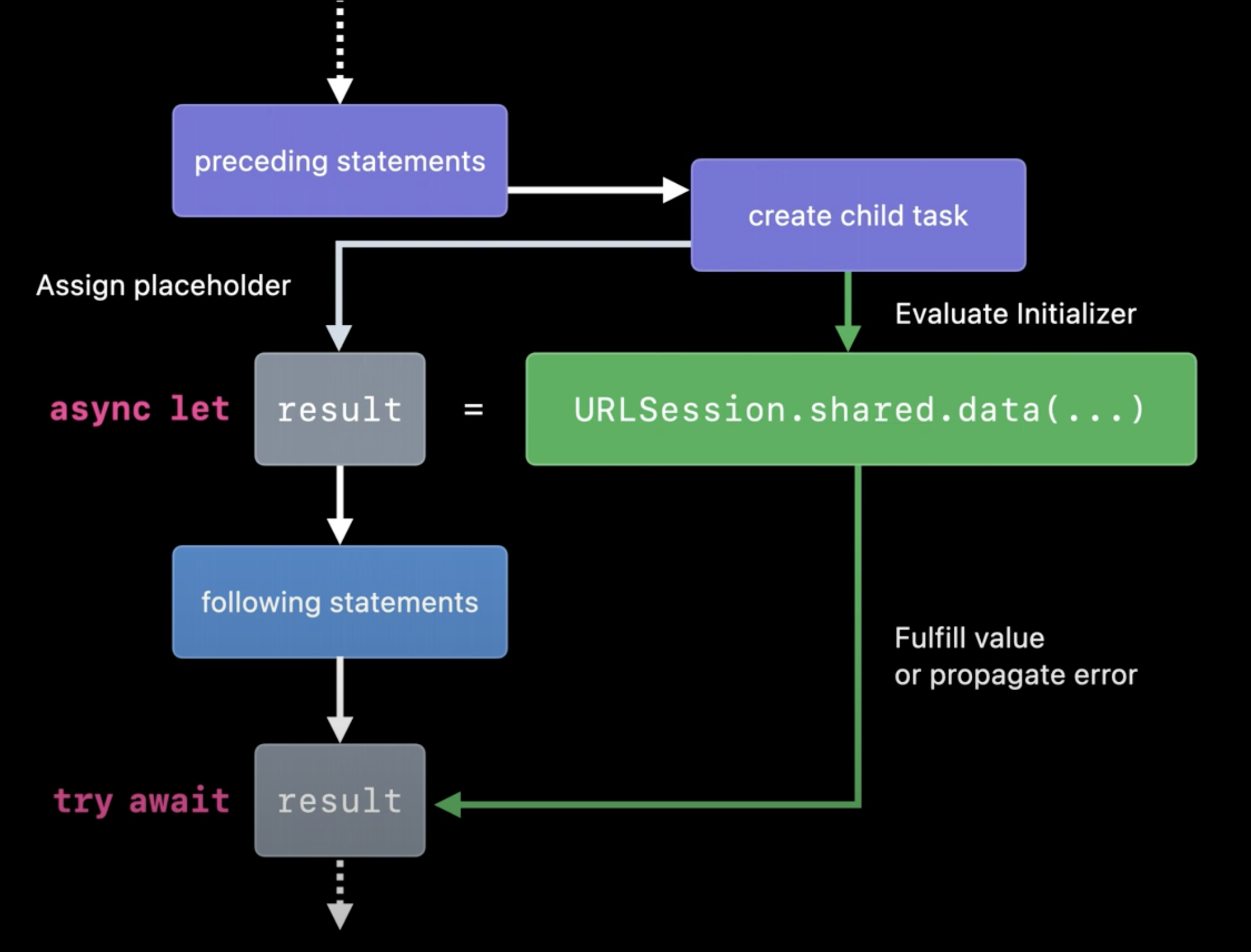 1. 동시 바인딩 평가를 위해 Swift는 먼저 새로운 하위 태스크(자식 태스크)를 생성